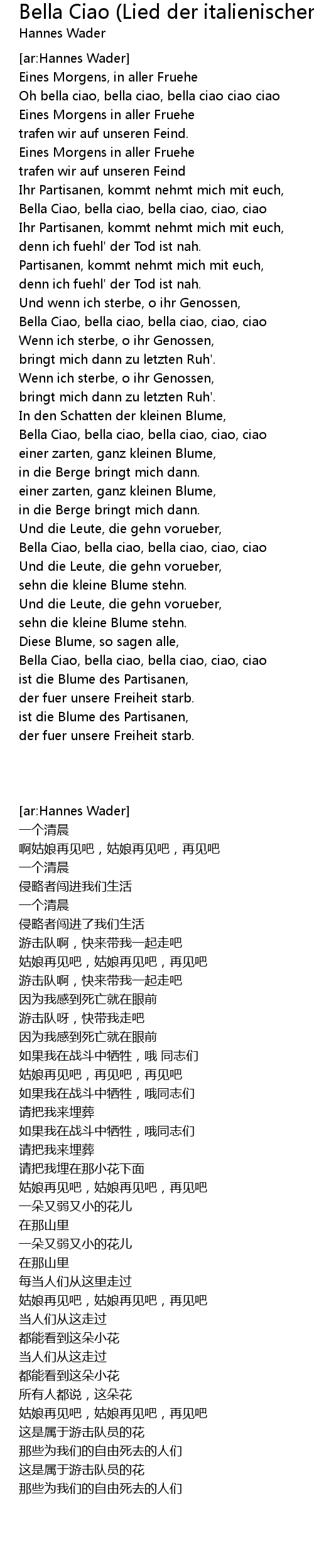 Songs And Lyrics In German And English Bella Ciao